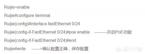 不同廠家POE交換機(jī)的配置命令略有不同,通常分為兩步: