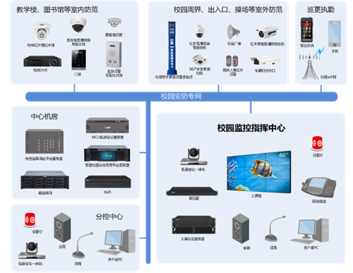 智慧校園的建設,絕不應該是對各個子系統進行簡單堆砌,而是在滿足各子系統功能的基礎上,尋求內部各子系統之間、與外部其它智能化系統之間的完美結合。系統主要依托于綜合管理平臺,來實現對視頻監控系統、入侵報警系統、門禁系統及校園停車場管理等各子系統的綜合管理和控制。